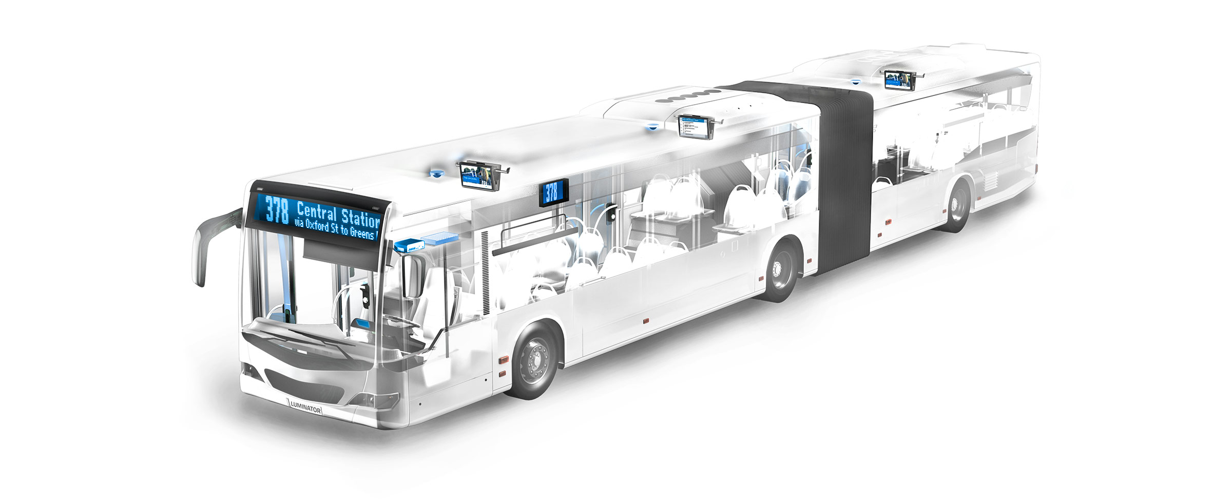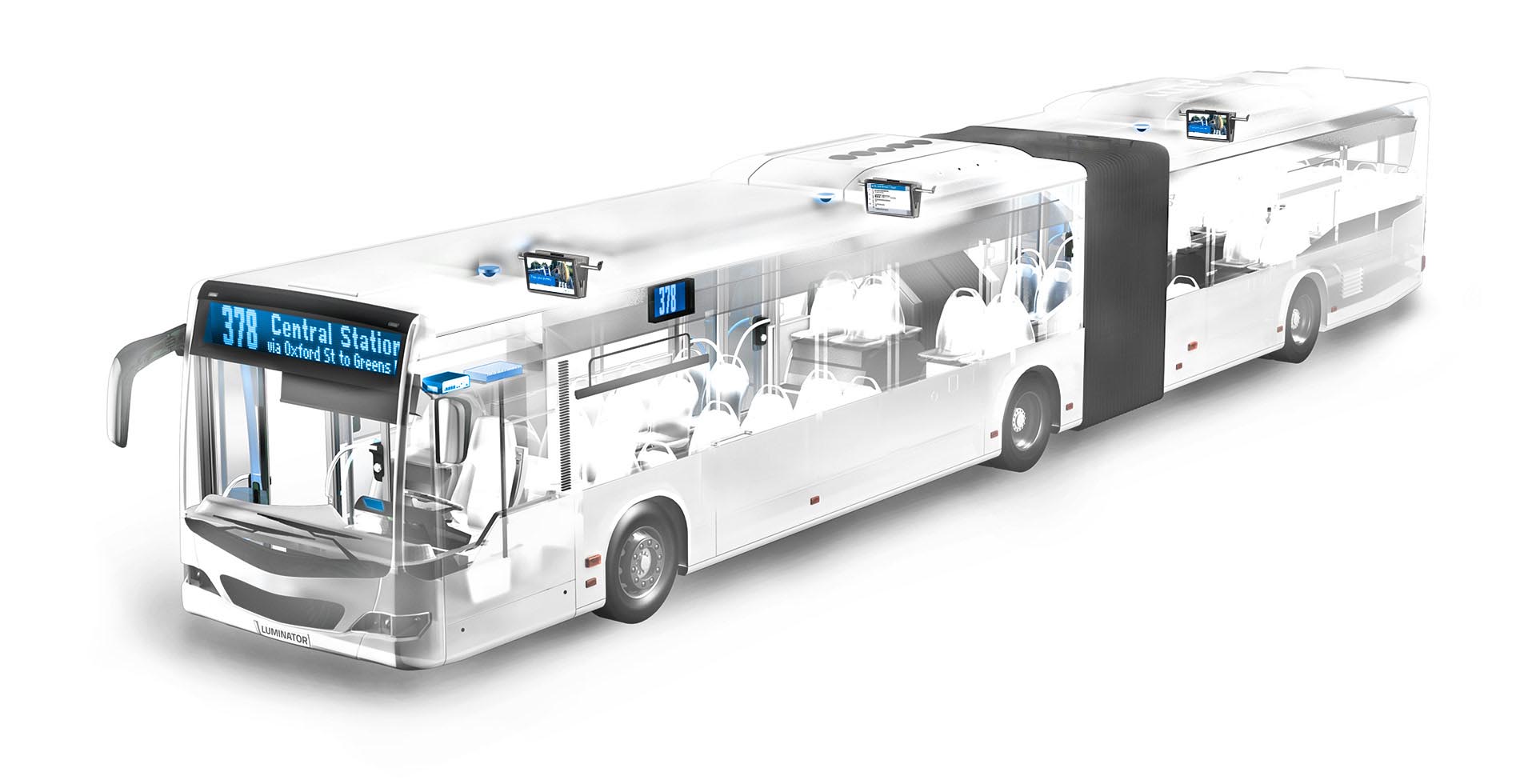 Luminator provides a comprehensive solution portfolio for on-board passenger information, fleet management, air treatment and video security systems.