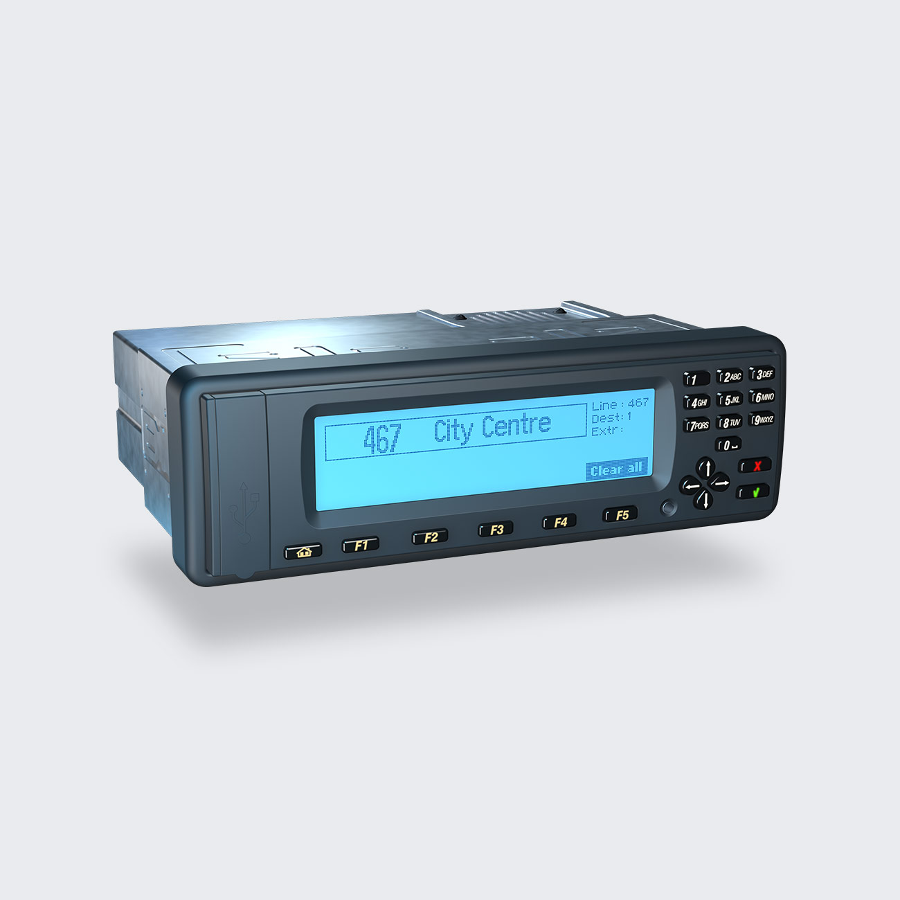 Los mensajes automáticos, como las pantallas de "Próxima parada" y los anuncios de voz, son controlados por el odómetro u (opcionalmente) activados por GPS. Los anuncios para el conductor son posibles dentro y fuera del vehículo, p. para los pasajeros que esperan en una parada. La unidad de control encaja en cualquier ranura de radio estándar (ISO 7736) y está equipada para su uso en condiciones difíciles con un frente clasificado IP con protección contra el polvo y el agua. Opcionalmente, la parte trasera también puede clasificarse como IP.