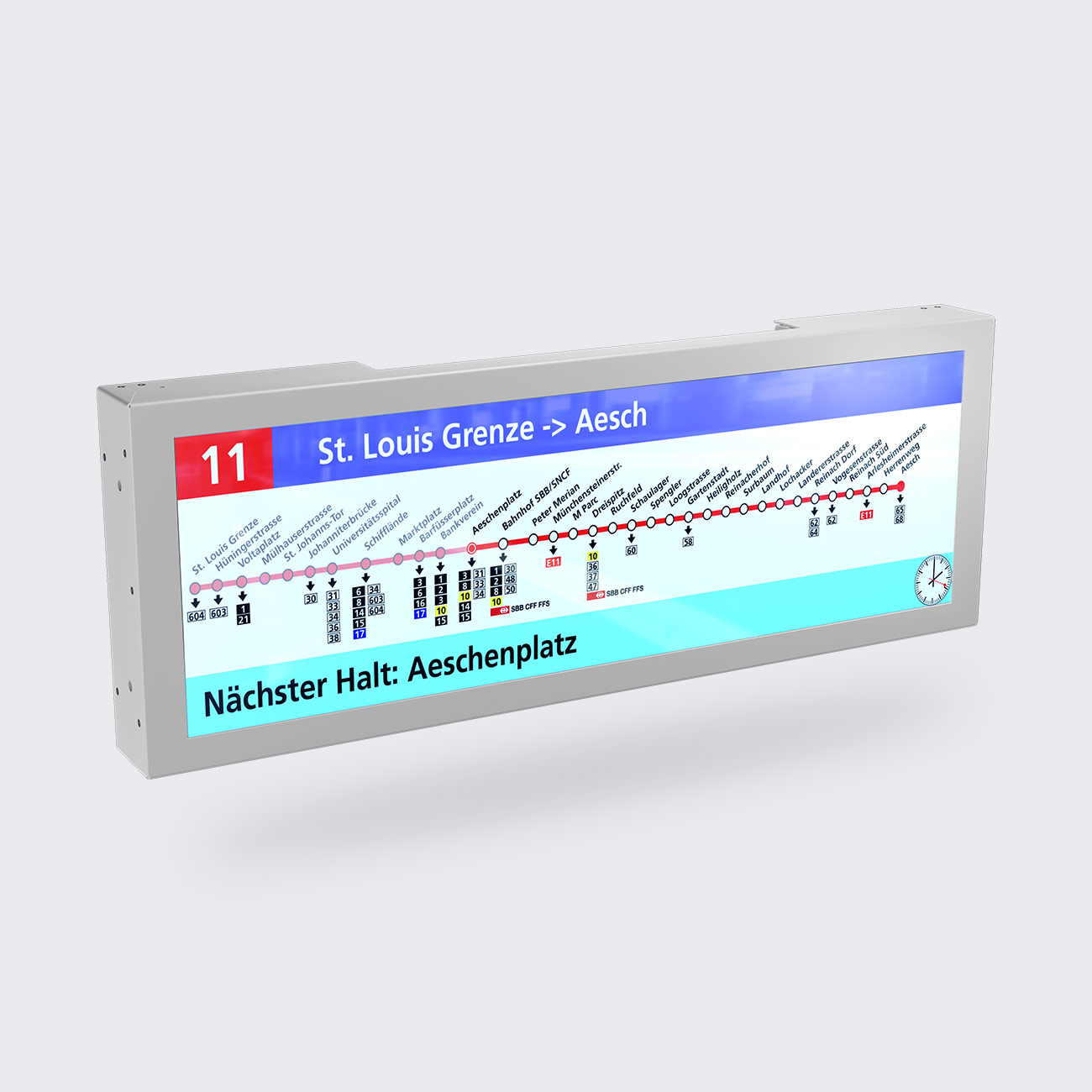 Im öffentlichen Nahverkehr macht ein Bildschirm einiges mit: Dauerbetrieb, Temperaturänderungen und Stöße gehören zum Alltag. Immer dann, wenn die Beanspruchung besonders hoch ist, sollten Betreiber bei der Wahl des Bildschirmgehäuses keine Kompromisse eingehen und auf Zuverlässigkeit, Betriebssicherheit und Funktionalität setzen. Mit Infotainment Basic sind Sie allen Anforderungen gewachsen. Das praktische Stahl-Design, der servicefreundliche Aufbau und das Einscheiben-Sicherheitsglas sorgen für Langlebigkeit und eine unkomplizierte Handhabung.