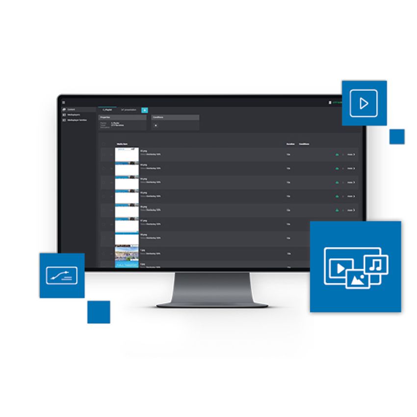 Distribute rights for software, presentations and content. With a few mouse clicks you can assign individual access rights to the server and it’s functions, such as device monitoring, troubleshooting and maintenance, managing real-time information, media content and lists.