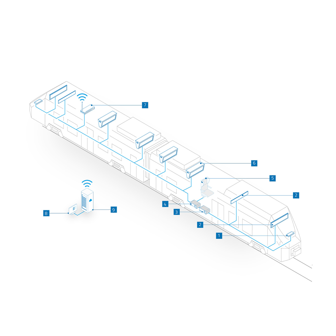 Organized by our backoffice suite, managed onboard by the PIS System Controller (PSC), the operator can select which content, when, how and where should it be presented to the passengers.