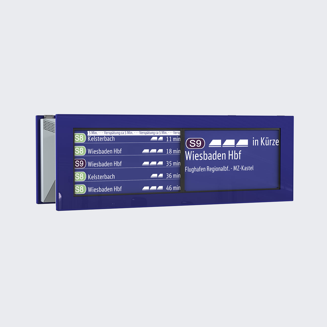 Cette fiche technique décrit une combinaison d'un moniteur maître et d'un moniteur esclave correspondant (de conception identique, mais sans PC intégré). Les deux appareils sont généralement montés dos à dos de manière à ce que les informations relatives au départ d'une voie spécifique puissent être lues dans deux directions opposées. Le PC intégré dans le moniteur principal contrôle également le moniteur secondaire.